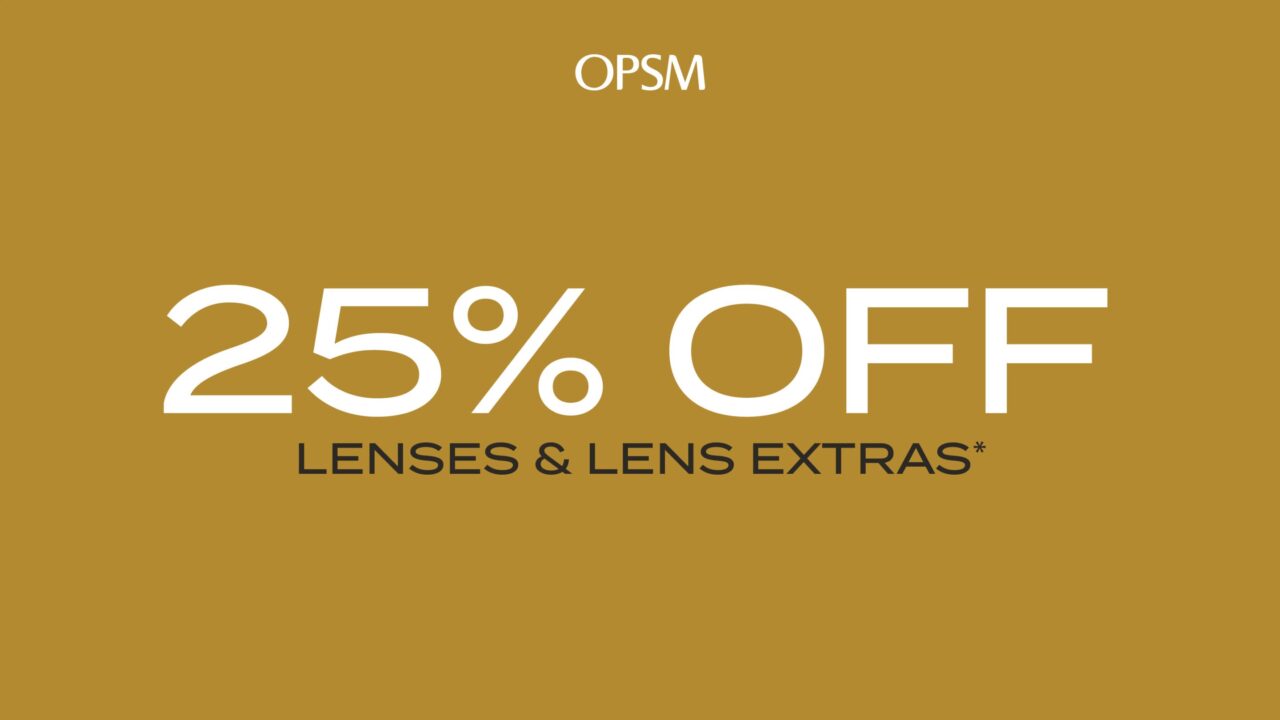 Enjoy 25% off lenses & lens extras* at OPSM